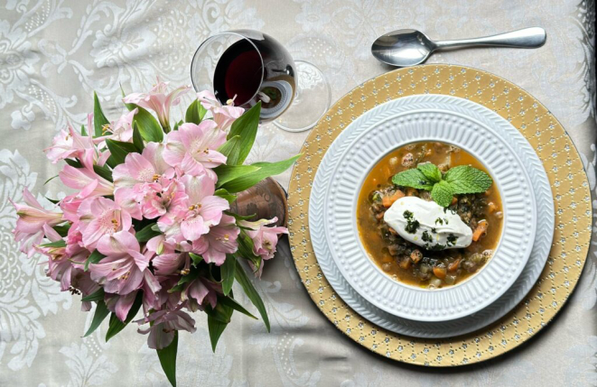 Sopa de lentilha à moda libanesa