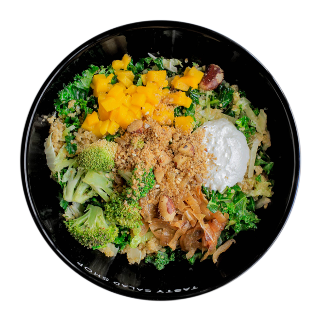 - Para adaptar a restrições alimentares ou ao que está disponível na geladeira, sugerimos trocar a manga pelo morango (que é mais comum no outono), a coalhada pelo abacate (ambos são fontes de gorduras boas) e o frango por tiras de fraldinha ou cogumelos salteados.