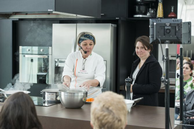 A ação para o Dia das Mães continua neste sábado (30). A partir das 18h, a chef Gabriela Carvalho (Quintana Restaurante) e sua mãe vão ao estúdio para ensinar o preparo de um frango especial com molho de cebolas e polenta cremosa. Para Gabriela, o prato tem grande relação familiar, pois a receita foi passada de geração em geração desde a sua bisavó. As inscrições já estão esgotadas.