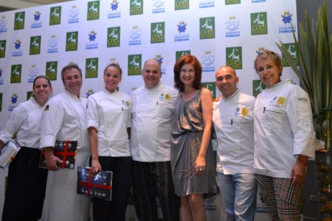 Um jantar a 12 mãos. Foi assim a 7ª Noite dos Chefs, no fim de novembro, no Buffet do Batel em Curitiba. Cada um deles fez um prato. A verba arrecadada será revertida para o Instituto de Pesquisa Pelé Pequeno Príncipe. Na foto, da esquerda para a direita, os chefs Joy Perine (Zea Maïs), Flávio Frenkel (Anis), Gilda Bley (Espaço Gourmet), Fabiano Marcolini, a diretora executiva do Hospital Pequeno Príncipe, Ety Cristina Forte Carneiro, Ivan Lopes (Mukeka) e Mara Alcamim (Universal Diner, Brasília)