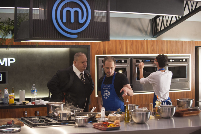 E, “por uma vírgula”, quem fez o pior prato e deixou a competição foi Helton porque fez um molho muito forte, carne com textura ruim e panquecas grossas e cruas.