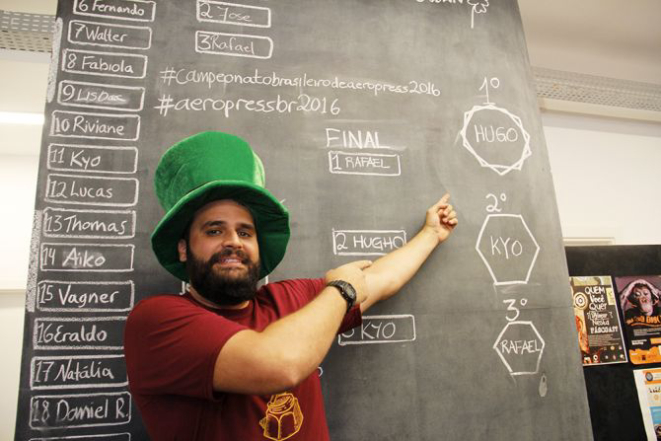 O paranaense Hugo Rocco venceu o segundo Campeonato Brasileiro de Aeropress. A competição é específica para quem domina o método de extração desta cafeteira e foi a primeira competição da qual Hugo participou. Ele é coffee hunter (caçador de café) do clube de assinatura de cafés Moka Clube, e usa o modelo de cafeteira desde 2008, quando morava em Londres. A disputa foi realizada em março no Nex Coworking, em Curitiba.