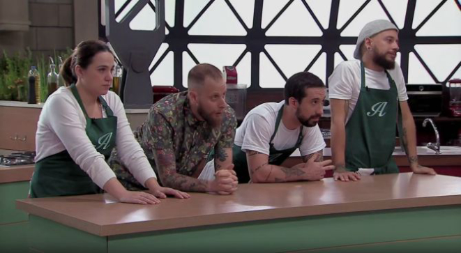 Apesar de estar apenas com dois integrantes no grupo, Felipe Bronze tem saído na frente pelos preparos de Marcos Carioba, que ganhou mais uma colher verde em seu avental. O personal chef recebeu a terceira colher verde pelo preparo de manjubinha, gordura de porco, gema e kimchi, um prato inspirado na cozinha coreana feito na prova eliminatória do terceiro episódio do reality show. O episódio foi ao ar na noite de quinta, 20.