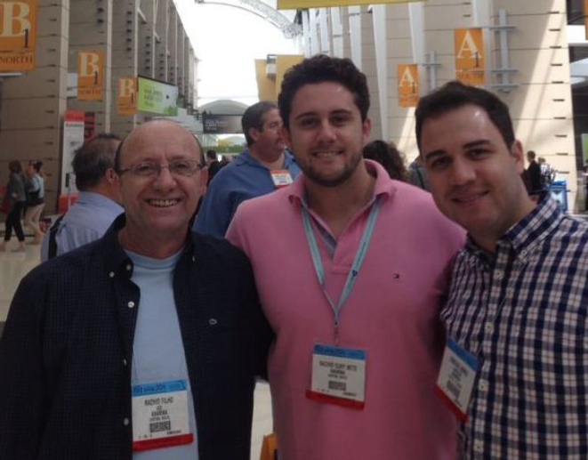 Os diretores dos Restaurantes Kharina Rachid Cury Neto e Vinicius Abreu com o fundador da empresa, Rachid Cury Filho, em Chicago. O grupo foi aos EUA no mês passado para participar do NRA Show, um dos maiores eventos gastronômicos do mundo.