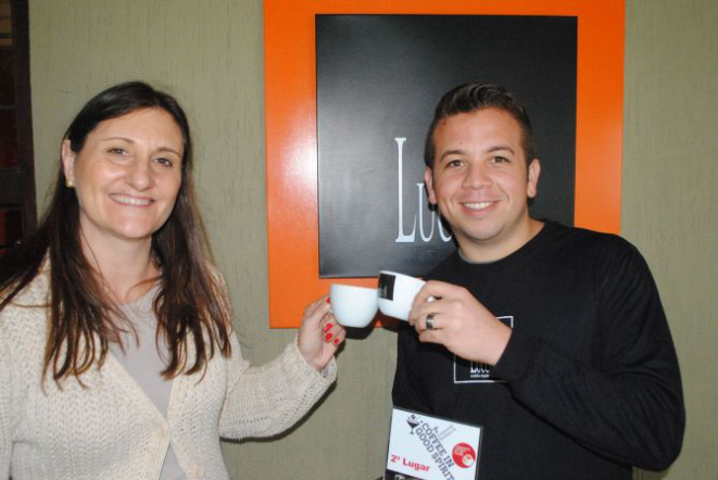 A barista e proprietária da Lucca Cafés Especiais, Georgia Franco de Sousa, comemorou com o barista Igor Salles a conquista do segundo lugar no campeonato brasileiro de baristas. Igor participou da categoria “Coffee In Good Spirits” em abril e trouxe mais um troféu para a cafeteria paranaense – que é a mais premiada do Brasil.