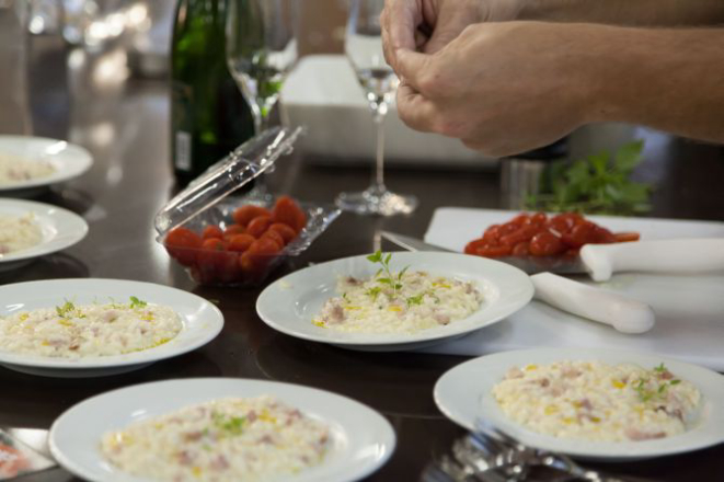 Os chefs Carlos Bertolazzi, Dalton Rangel e Guga Rocha, do programa Homens Gourmet (exibido pelo canal Fox Life), proporcionaram uma tarde animada aos leitores convidados da revista Bom Gourmet. Eles prepararam um risoto à carbonara e deram algumas dicas de cozinha.