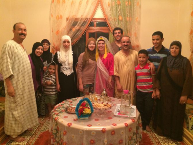 Na hora de me despedir, me vestiram com os trajes típicos berber, foi uma festa só! A cada dia estou mais apaixonada por esse povo, seja por sua hospitalidade, e é claro, por sua deliciosa culinária.”