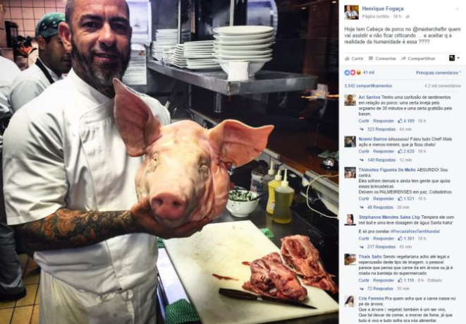 Na tarde de terça-feira (17) o jurado Henrique Fogaça já tinha dado uma pista do que estava por vir no programa daquela noite, postando a seguinte frase numa rede social: hoje tem cabeça de porco no MasterChef, quem vai assistir e não ficar criticado e aceitar que a realidade da humanidade é essa?”.