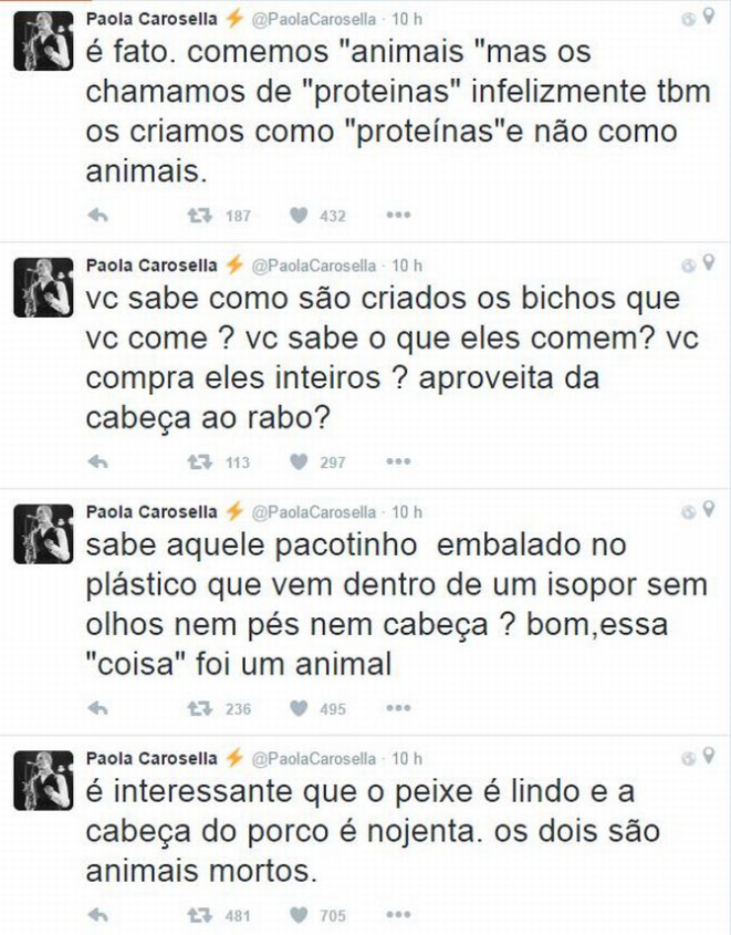É claro que a polêmica veio à tona: a internet se dividiu entre aqueles que defendem o direito dos animais e os que defendem a livre vontade de comer carne. A chef argentina Paola Carosella também se manifestou no Twitter: “É interessante que o peixe é lindo, e a cabeça do porco é nojenta. Os dois são animais mortos”, disse. Enquanto os participantes tiveram que preparar um prato com a carne de porco, o público em casa criticava o uso da cabeça do animal.