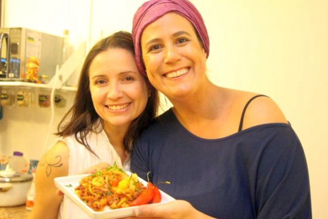 A cantora e compositora Alana Rox, de São Paulo, esteve em Curitiba para ministrar workshops de culinária funcional e vegana na cozinha do Bom Gourmet, uma parceria entre a empresa Menu Fit e Gazeta do Povo. Na foto, Alana (à esquerda), com Camile Fiúza, da Menu Fit.