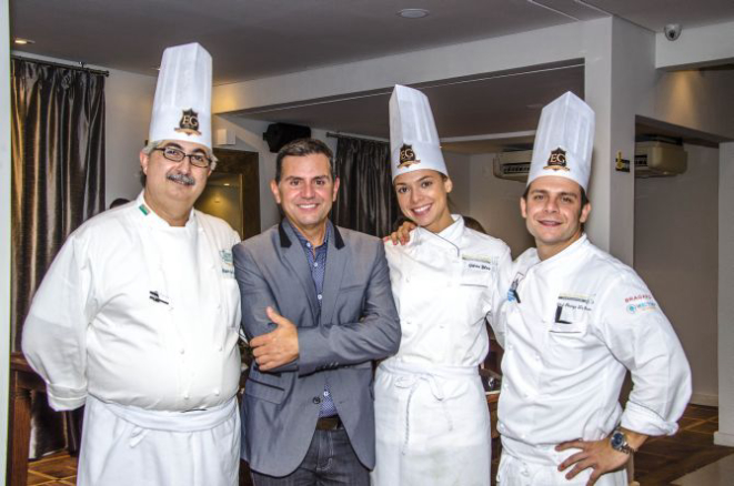 A formatura do curso de Chef de Cuisine do Espaço Gourmet Escola de Gastronomia, no fim do ano, teve um convidado especial. O chef Almir Fonseca, instrutor e Chef Executivo da Culinary Institute of America at Greystone, nos Estados Unidos, veio à Curitiba especialmente para celebrar o acordo entre a escola curitibana e o instituto. Da esquerda para direita: Almir da Fonseca, Márcio Silva, Gilda Bley e Rodrigo do Prado.