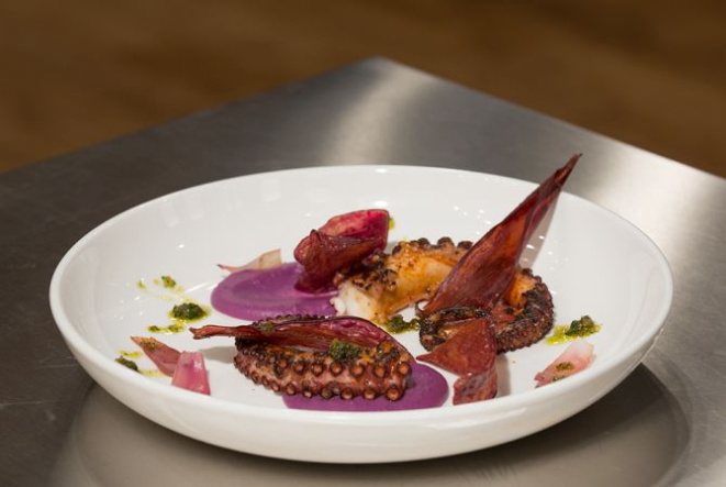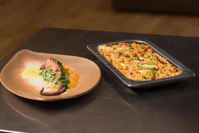 O chef começou “assustando” o polvo, ou seja, mergulhando-o e retirando da água quente e depois colocando-o para cozinhar na panela. O molusco foi finalizado posteriormente na brasa. Através de um sorteio cada concorrente ficou com uma receita. Redondo explicou que os pratos eram fáceis. “São pratos mais simples. Mas, ou são perfeitos ou nada valem”, disse. O mais difícil, na sua avaliação, era o preparo do polvo com arroz. “É o mais complicado por ter mais processos”, explicou.