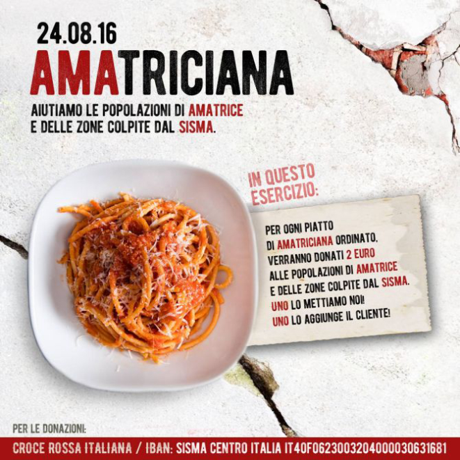 A solidariedade passa também pela gastronomia. No dia em que o centro da Itália foi abalado por um terremoto devastador, chefs do país da bota estão se mobilizando para ajudar as vítimas. Diversos restaurantes de Roma, como Meo Patacca, Da Vittorio e Taverna dei Mercanti, vão doar 2 euros de cada prato de spaghetti all’amatriciana servido: um euro é doado pelos clientes, outro pela casa.