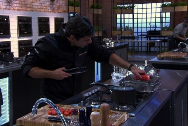 Quem não se destacou nesta primeira etapa, foi para o Desafio da Eliminação. E os nove participantes tiveram que cozinhar ao lado de Felipe Bronze, que preparou vieiras, melancia defumada, tomate assado e rabanete com tinta de lula. Nesta prova, eles tinham à disposição três ingredientes secretos que deveriam ser usados. No entanto, eles eram revelados pouco a pouco. Imagine cozinhar apenas com ingredientes vermelhos, pretos e brancos? Esse foi o desafio. Alguns, infelizmente, também cometeram erros, e básicos, como acrescentar limão ao tartare quase ao ponto de “cozinhar” a carne.