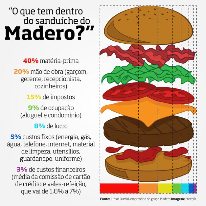 “De um sanduíche de R$ 43, nosso lucro é de R$ 3,30. Dos R$ 38,70 restantes, R$ 16,80 é o custo do produto. E temos R$ 21,90 que são impostos, comissão de cartão de crédito, aluguel e condomínio, o salário dos meus funcionários e outros custos fixos”, detalha Durski.