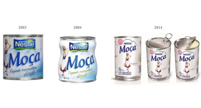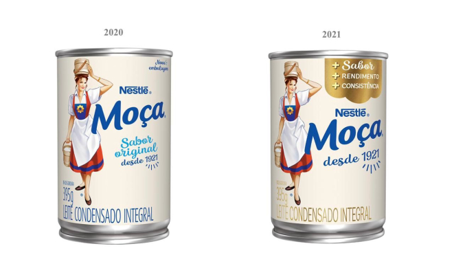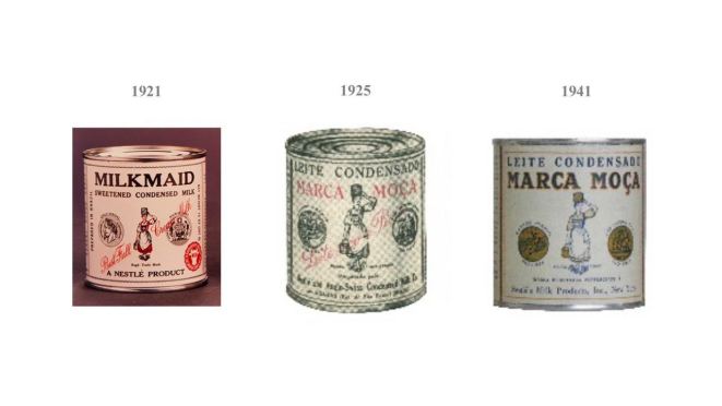 Em 1925, quatro anos após começar a ser produzido no Brasil, o Milkmaid teve o seu nome traduzido para o português e virou Leite Moça. A camponesa suíça segurando latas de leite é a cara do leite condensado da Nestlé desde o início. "No Brasil, há registros de que muitas mulheres pediam pelo leite da moça. Aí veio a ideia de mudar o nome, que se tornou uma referência até de categoria, já que muita gente acaba chamando todos os leites condensados de Leite Moça", explica Keila.
