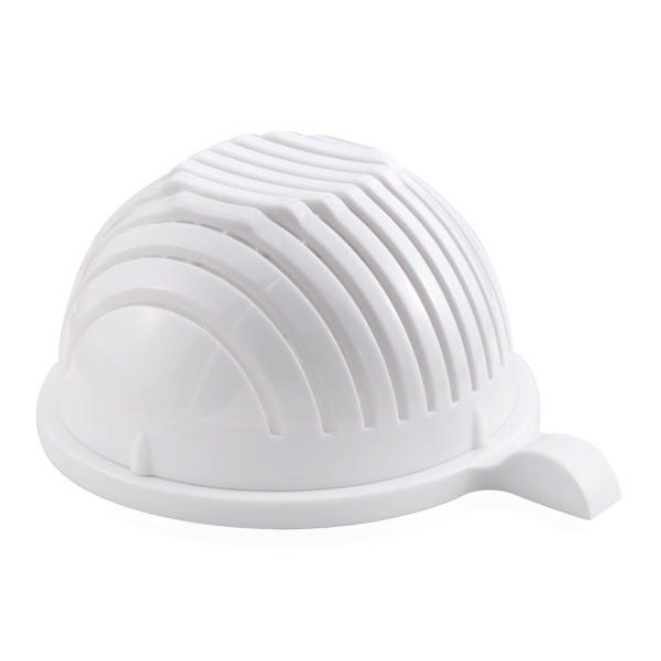 Cortador e escorredor de saladas. Basta inserir os alimentos no interior do bowl, lavar e escorrer. Depois, é só fechá-lo e passar a faca sobre as ranhuras. Disponível por R$ 30 na MadeiraMadeira.