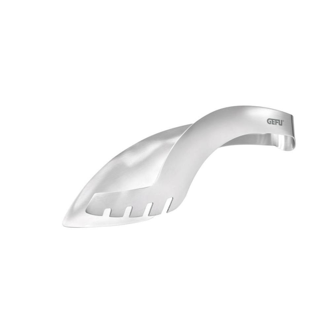 Essa elegante pinça em aço inox tem design que possibilita que o molho seja servido junto com a salada