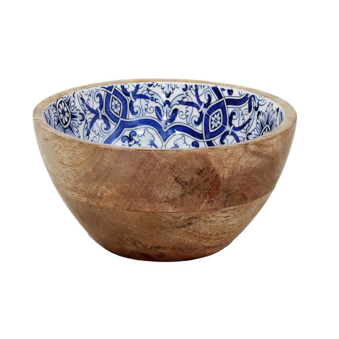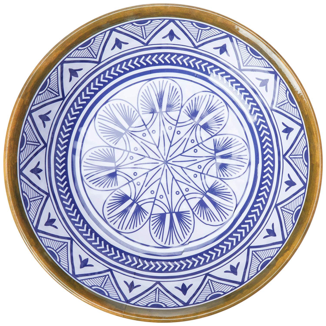 Saladeira Linha Mandala nas cores branco e azul, em estampa delicada e moderna. Feita em melamina,