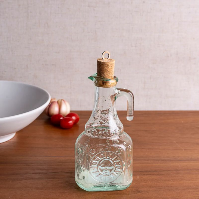 Porta-azeite em vidro reciclado com capacidade para 250 ml. Sai por R$ 29,99 na Etna.