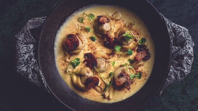 É o que fazem os chefs Felipe Machoski e Vitor Verona, ambos à frente das cozinhas dos restaurantes Miuq, especializado em leites e lácteos, e do Officina Restô Bar. O parmesão saboriza a fonduta que acompanha o waffle com rosbife e o caramelle de cogumelos, um molho à base de nata. "A nata é importante pois tem mais gordura que o queijo, o que ajuda na consistência e homogeneidade do molho ao emulsionar", explicam os cozinheiros.