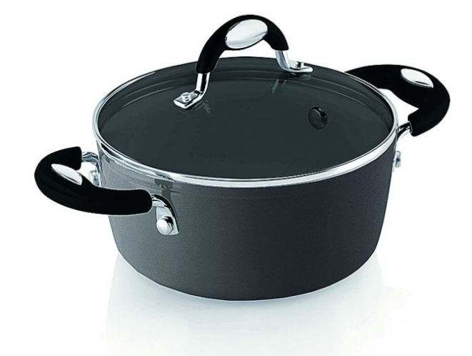 A italiana Bialetti apresenta a caçarola Leonardo. Em alumínio, ela tem revestimento interno antiaderente Duratek-o. O revestimento externo é antirrisco. O fundo antiderrapante impede que a panela fique “dançando” sobre o fogão. O cabo e as alças são em aço inox em silicone, resistentes até 230 graus C.