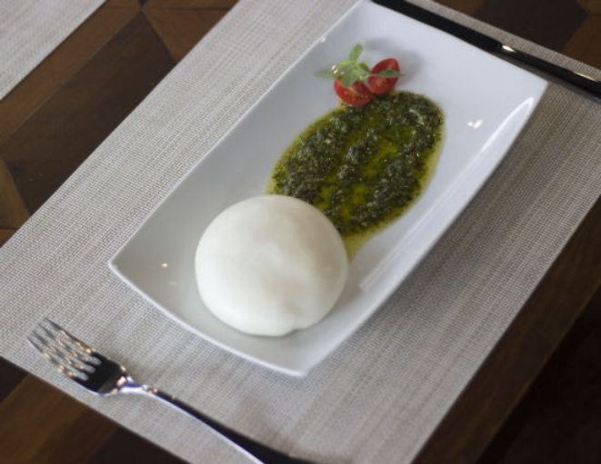 A casa tem vários pratos feitos com o queijo. Alguns deles são a pizza individual Napolitana (R$ 42), com borda mais grossa, molho de tomate pelado, burrata e manjericão; a tábua para quatro pessoas (R$ 97) que leva burrata, queijo de cabra, gorgonzola, gran formaggio, presunto Negroni, salamino piccante italiano, figo em compota, nozes e geleia artesanal de pimenta dedo de moça, acompanhado de pão Piola e o spaghetti ao molho sugo com tomates cereja salteados, acompanhado de burrata e manjericão por R$ 42.