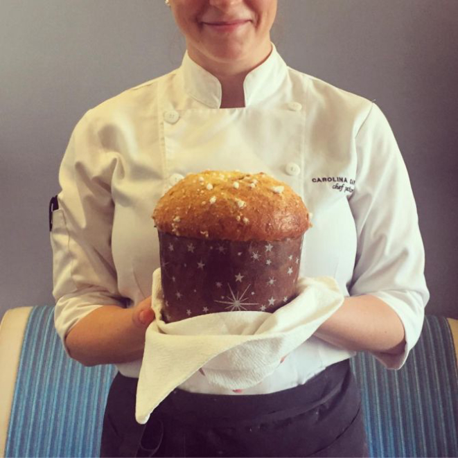 Carolina conta que os panettoni da confeitaria são feitos a partir da fermentação natural, num processo que demora 48 horas. “É um processo artesanal, sem corantes e conservantes e com farinha italiana”, diz. Ela comenta que só começou a fazer o pão tradicional do Natal porque achou um importador dessa farinha.