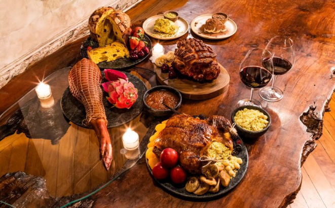 A "Menu Vem 2022!" é composta por Folhas de Noel e Burrata, salada de grãos, rosbife ao demidijon, crevettes au champagne, rondelli de queijo gruyèree e presunto Royle ao molho sugo e bechamel e arroz ao champagne e amêndoas. Esta opção sai por R$ 1.900 e serve até 10 pessoas.