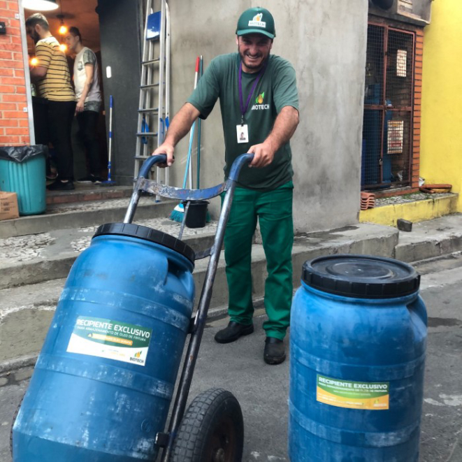 “Na Biotech trabalhamos com recolhimento em empresas, mas também em condomínios e projetos sociais. Damos atenção a líderes de comunidades que buscam um retorno social do projeto”, explica Luiz Eduardo. Ele confirma que há, ainda, pouco conhecimento dos empresários sobre o quanto o óleo despejado na rede de esgoto polui o meio ambiente.