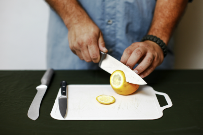 Você pode fazer dois testes simples: tente cortar a fina casca de um tomate. Se conseguir cortá-la só com o peso da faca, sem fazer força, ela está afiada. Caso contrário, é hora de afiar. Você também pode testar com uma folha de papel. Se a faca deslizar no corte, bem precisa, ela está afiada.