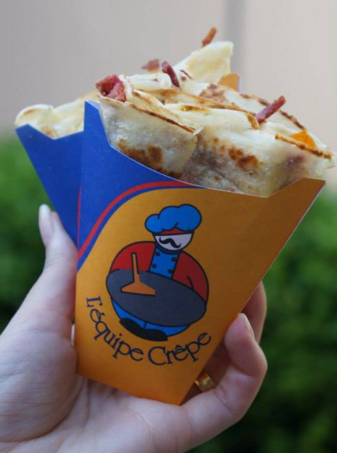 A L’équipe Crêpe tem um cardápio extenso de crepes parisienses no cone: são 43 sabores salgados e 20 doces. Os mais pedidos são strogonoff, carne com cheddar, napolitano, margherita e rúcula. Já entre os doces, o campeão de vendas é o de morango com chocolate. Também se destacam os sabores de banana, doce de leite e dois amores. A empresa trabalha com eventos fechados, nos quais é possível escolher seis tipos de crepe salgados e quatro doces. O preço por pessoa é de R$ 32 e a quantidade de crepes é ilimitada. A L’équipe Crêpe também participa de alguns eventos de gastronomia em Curitiba e encontros de food trucks. É possível acompanhar a agenda do local por meio da página no Facebook.