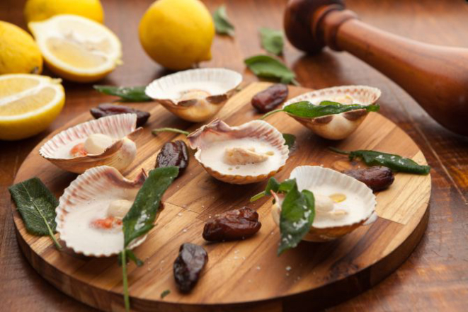 Forre o fundo de uma cesta de bambu com folhas de alface. Coloque as vieiras sob as folhas, tampe e deixe vaporizar por cerca de 8 minutos ou até ficarem opacas.
