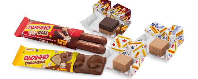 Quatro novas versões do doce de amendoim Dadinho estão chegando aos pontos de venda: Duo (meio a meio, tradicional com chocolate), Dadinho Roll (rolinho de wafer recheado de dadinho e coberto de chocolate), Dadinho Tribombom (três bombons com cobertura de chocolate) e Dadinho Zero. Este último tem o mesmo formato do tradicional, mas com nova fórmula, sem açúcar adicionado.