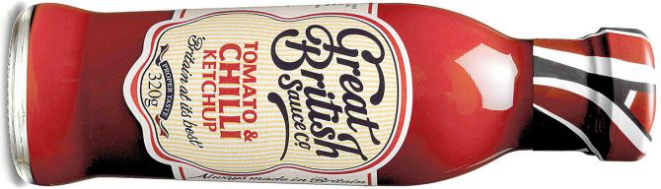 A nova linha da Great British Sauce é composta por cinco sabores: barbecue, sweet chilli, sweet curry, ketchup picante e ketchup. As embalagens chamam atenção pelo design retrô do frasco de vidro.