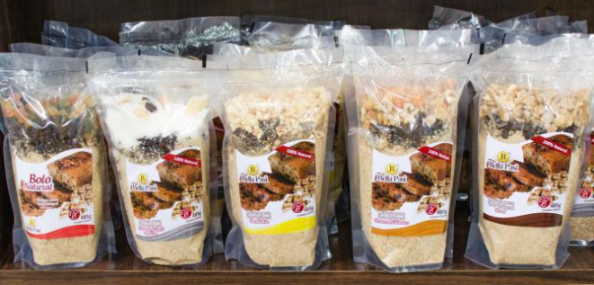 Procura sabores para fazer bolo integral? Na Cia D’Tempero (box 23 e 24 – (41) 3363-1527) há cinco opções de sabores: nozes, nozes com damasco, frutas, macadâmia, e castanha-do-pará com coco. Os pacotes têm 485 g e custam R$ 13,90.