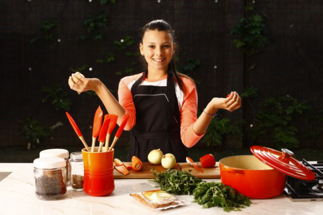 Antonia Fleischfresser Affonso da Costa, 12 anos, sempre foi uma criança curiosa, conta a mãe Priscila. “Ela cozinha desde os 6 anos. E aqui em casa sempre incentivamos que experimentasse novos sabores, como a comida indiana e japonesa”, exemplifica. Antonia, que já fez aulas de culinária, prepara desde ovo mexido até camarão tailandês e chicken tikka masala. “Sempre cozinho com a minha mãe, mas me viro bem sozinha”, diz ela. A sua culinária preferida é a indiana. Até no rol de doces ela se aventura. “Adoro fazer nega maluca. Recheio com brigadeiro. Mas, quando tem granulado, uso na cobertura”, diz.