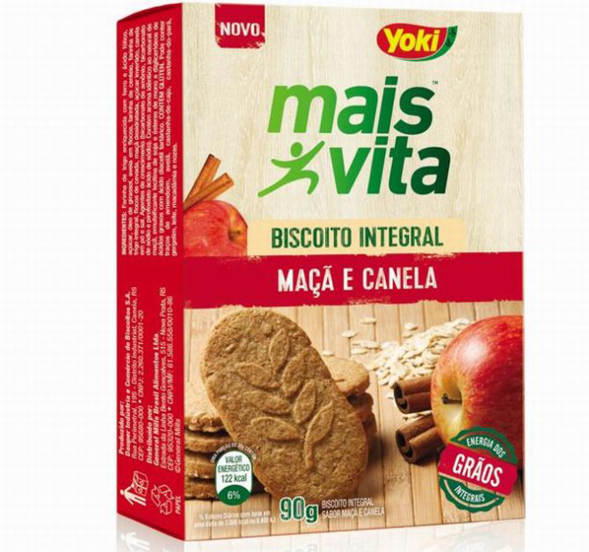 A Yoki Mais Vita, marca de alimentos saudáveis da General Mills, acaba de relançar sua linha de produtos. Um deles é a categoria de snacks saudáveis, com quatro sabores de biscoitos integrais: aveia e mel, cacau e aveia, frutas vermelhas e maçã e canela (foto). Cada embalagem vem com três pacotes com 30 g cada.