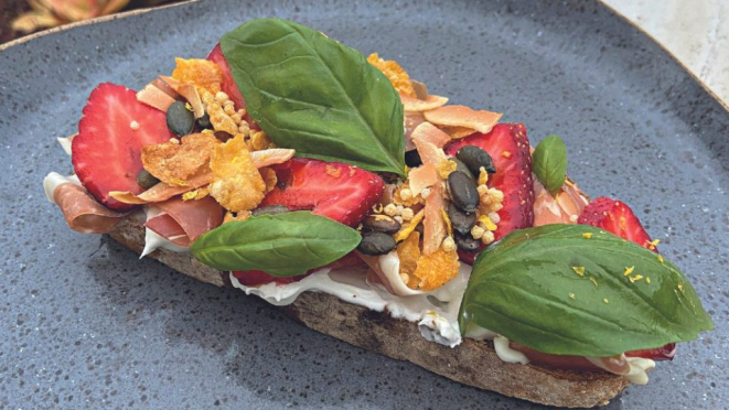 E engana-se quem acha que o morango só vai bem em preparos doces. Um dos itens criados pela chef para o festival traz, de forma surpreendente, o sabor da fruta para o paladar salgado: uma toast com burrata, presunto parma, granola salgada e morangos desidratados no sal e no balsâmico (confira a receita ao lado). “É uma fruta extremamente fácil de trabalhar. Você consegue partir de um salgado, ir para um neutro, para uma pessoa que não gosta de um doce muito doce, até um doce para criança, de chocolate com morango, que é a combinação mais clássica. Não é uma fruta que vai roubar o sabor de outros ingredientes, mas vai complementar com cítrico e dulçor”, destaca Anna.