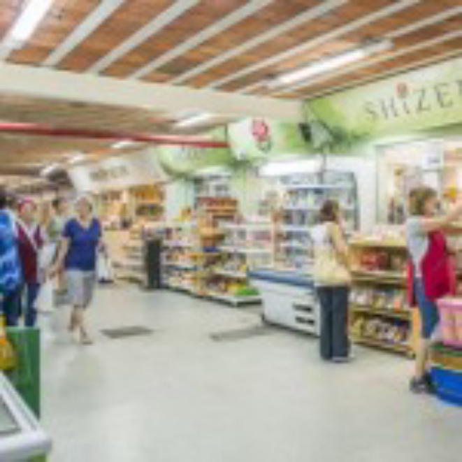 Quem entra pela porta C, na rua da paz, dá de cara com os orgânicos, onde se descansa as pernas em frente à lanchonete e banquinhas de hortifrutis, sacolas encostadas na base das mesinhas e uma garrafinha d’água na mão. ainda no segundo andar, as filas na praça de alimentação se concentram das 12 às 14 horas, e o cheiro é de pastel, de bufê quentinho, de bife acebolado do PF do Eliseu. E depois, um espresso para fechar a refeição em uma das três cafeterias e colocar o papo em dia olhando para a rua General Carneiro ou para as mercearias dos corredores do primeiro andar. Por lá, a tentação está sempre à espreita entre as 64 mercearias: “Vai um suco de uva? Goiabada cremosa? Quer provar um queijinho? Um salame?”