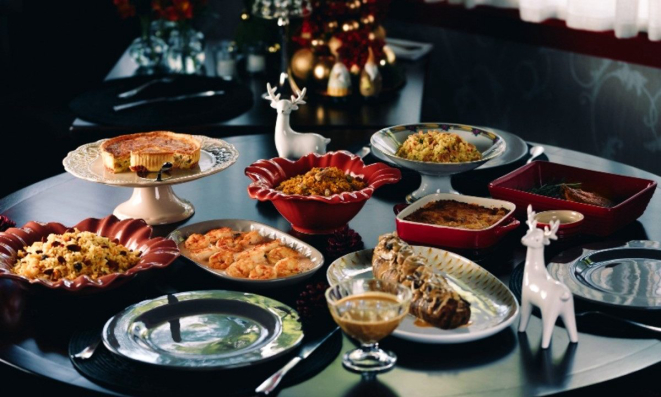 Assinado pela chef Solange Schneider, o menu natalino tem opções que começam com os finger foods: folhados mini-vol-au-vents com recheios nas opções cogumelos cremosos; camarão e palmito pupunha; gorgonzola e damascos; ou fricassé de frango e aspargos (R$ 130, 24 unidades). Como entrada, uma das pedidas é a salada de confit de pato com quinoa e abóbora assada (R$ 89 o quilo). Como prato principal, há desde a ave natalina, recheada com miúdos e maçãs marinadas ao vinho do Porto (R$ 440 a unidade, para seis a oito pessoas), ao pernil suíno com escamas de damascos caramelizados com couscous de legumes (R$ 420 a unidade, que serve de oito a dez pessoas).