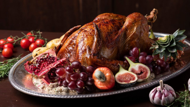 Para começar, a sugestão da Itália Grill vem com pegada italiana com a salada caprese de burrata (R$ 88, para cinco pessoas a R$ 220, para 15). O prato principal pode ser pedido à brasileira, com farofa, banana à milanesa, abacaxi e castanha de caju, ou à Califórnia, com farofa doce, frutas em calda e fios de ovo, com uma pequena diferença de preço entre eles. As opções de carne são chester, lombo, peito de peru fatiado, pernil fatiado, tender fatiado e peru, com preços que variam de R$ 250 (lombo à brasileira, para cinco pessoas) a R$ 498 (peru à Califórnia). Há opções de carnes como o mignon ao molho madeira (R$ 304, para dez pessoas) e frutos dos mar como o camarão ao molho Trovata (R$ 352, para dez pessoas). Especialidade da casa, as massas também podem ser encomendadas, como é o caso do rondeli natalino, feito com tomate seco, muçarela de búfala e rúcula ao molho bechamel (R$168, para dez pessoas). Há, ainda, acompanhamentos e sobremesas.