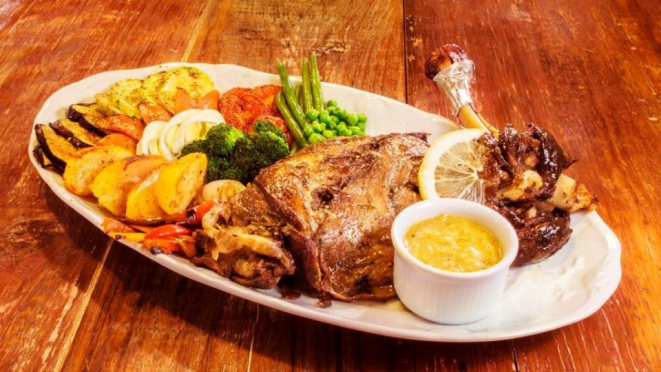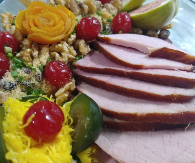 No menu também tem pernil de leitão, tender, rosbife e até camarão na moranga, que é servido com arroz de açafrão e alho-poró (R$ 290, a unidade, que serve 4 pessoas). Para acompanhar, há várias opções de saladas, como a salada cremosa de bacalhau, uvas verdes, azeitonas calamata, passas marinadas em prosecco e batatinhas babies confitadas em azeite (R$ 145 o quilo), além de massas artesanais com molhos variados.