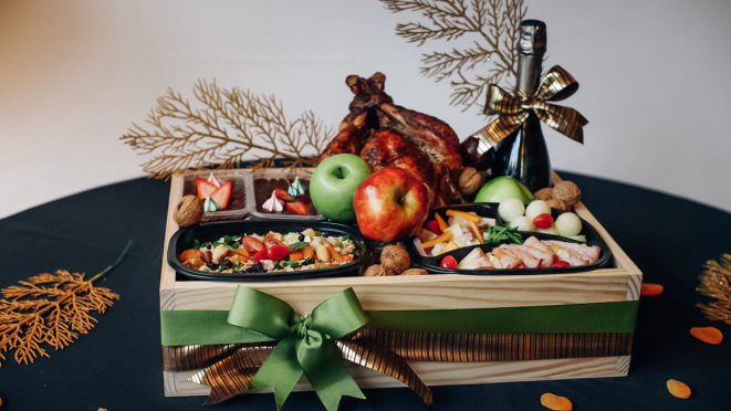 O Bourbon Curitiba Convention Hotel tem como opção para encomenda o box com ceia de Natal - e também para o ano novo. Os cardápios contemplam entrada, prato principal, sobremesa e uma espumante para brindar em família. Para o Natal, tender laqueado ao mel com abacaxi, bombom de lichias com creme de gorgonzola, peru assado, acompanhado de batata Hasselback ao trio de cogumelos, e conchiglione de espinafre com ricota ao molho trapanese, bacalhau à Gomes de Sá, com arroz com amêndoas laminadas. Para finalizar, de sobremesa, trifle de morangos com creme de chocolate. Já para o Réveillon, palmito com fundo de alcachofra e tomate seco, caponata de berinjela, bacalhau à laranjeira com legumes baby com finas ervas, alcatra suína ao molho de damasco e queijo brie, acompanhado de arroz branco com lâminas de coco, tartellini de ricota com figos ao molho creme. De sobremesa, brownie ao creme de chocolate e crumble de nozes, dão a doçura para o ano que está por vir. As caixas fechadas ainda levam um espumante brut e o valor de cada uma é de R$479. Os itens são fechados, não permitindo alterações, e servem até quatro pessoas.