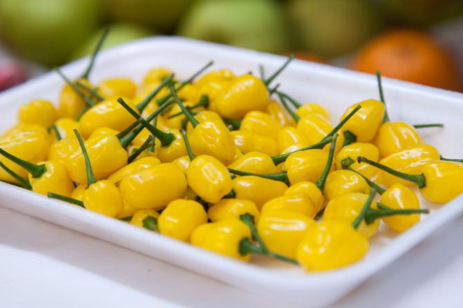 Essa pequena pimenta de cor amarela é cultivada em Colombo, na região metropolitana de Curitiba. É muito ardida e é utilizada para temperar molhos e carnes. Uma boa dica é retirar as sementes para neutralizar um pouco a picância (R$ 40 o quilo). Na Mercearia MMM (box 37-38, (41) 3264-2721).
