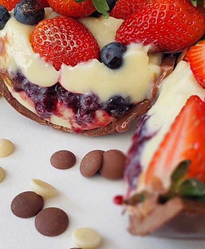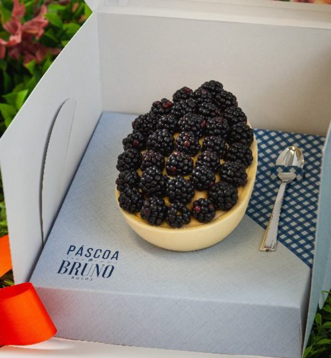 Com know-how em bolos, especialmente os naked cakes, o confeiteiro tem uma linha especial para a data do coelhinho. São quatro opções de ovos, como o Kinder & M&M´s (casca de chocolate, recheio bolo de chocolate, brigadeiro de chocolate cremoso, decorado com Kinder Ovo, Kinder Bueno e M&Ms, R$ 90, 550 g) e o Amora 4 Leites, um dos principais bolos que se transformou em ovo. Tem casca de chocolate branco, recheio bolo black, 4 leites cremoso e geleia de frutas vermelhas, decorado com amoras, R$ 85, 550 g. As encomendas podem ser feitas até o dia 28. Informações Instagram @brunoboloscwb