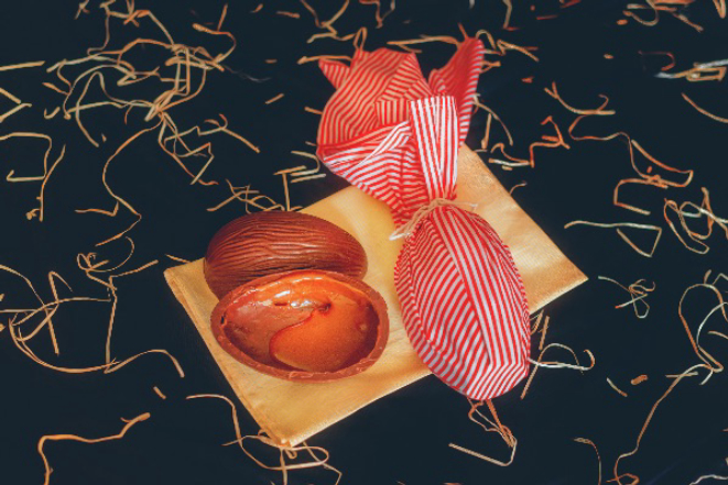 A doceria curitibana Pastry Lab traz "ovos incrustados" no seu menu de Páscoa. São versões de meio ovos com ingredientes inusitados como melão tailandês, laranja espanhola, flocos de sal negro, entre especiarias, castanhas, flores e trufas italianas de verão. O peso dos ovos é de puro chocolate belga saborizado e suas respectivas crostas. Há também opções com cacau mexicano 66% e cacau africano 80% por exemplo. Um dos destaques da coleção é o com trufas italianas! Ele traz uma combinação de chocolate belga 80% feito a partir de um blend de cacau africano harmonizado com trufas negras italianas de verão e mel de trufas brancas italianas.