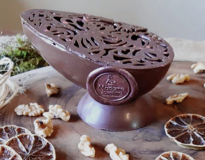 Marca tradicional em Curitiba, a confeitaria sempre tem novidades. Neste ano, uma delas é o ovo Cupuaçu, feito com lascas da fruta desidratada e chocolate 50% cacau (R$ 75, 280 g). O segundo destaque são os ovos recheados. Este ano foi criado o recheio de champagne, cereja e chocolate 70% amargo (R$ 95, 370 g). Mas, os queridinhos Alfajor e o Amarula permanecem. A marca também se sobressai pelos ovos artísticos, com uma apresentação mais lúdica. Destaque para o com rosas esculpidas (R$ 110, 450 g) e o com formato de pintinho (R$ 175, 650 g). Encomendas no site www.rosepetenucci.com.br ou pelo WhatsApp (41) 99847-0405.