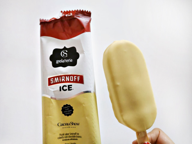 Lançado recentemente em edição limitada para o verão, o novo picolé de Smirnoff Ice é produzido com vodca e limão tal qual a versão das garrafinhas e latinhas vendidas pelo comércio, mas com uma cobertura de chocolate branco e teor alcoólico de 3,4%. O sorvete é a aposta da Cacau Show para conquistar novos paladares em sua linha de Gelateria.