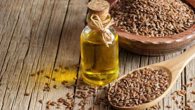 O óleo de linhaça é fonte de ômega-3, tem um ponto de fumaça muito baixo e não deve ser aquecido. Ele confere sabor de nozes aos alimentos. Ótimo para vinagretes e como óleo de acabamento para proporcionar sabor e textura. Certifique-se de que ele seja armazenado em um local de baixa temperatura, como a geladeira.